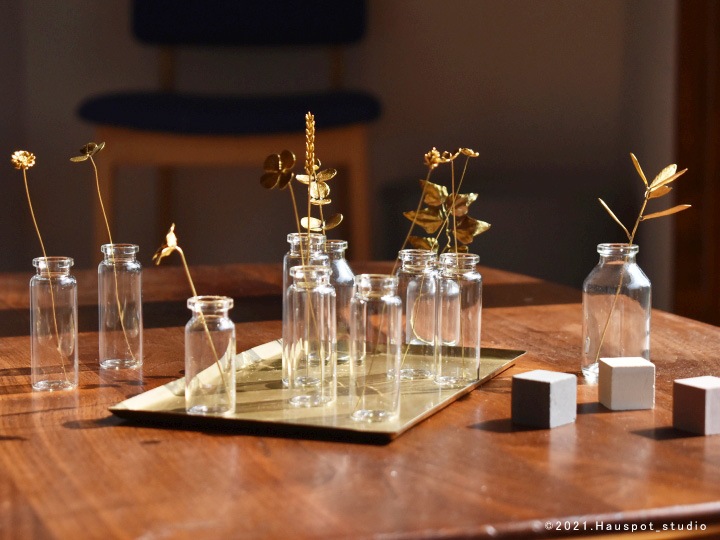 トップ > グリーンインテリア > メタルプランツ > メタルプランツ|真鍮花と小瓶 ミニサイズ|クラシックローズ|真鍮素材 アートフラワー