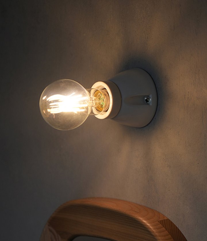 全方位を照らす「ザ・シンプル」な作りになっています。壁付け、天井付け、どちらでも使えるスタンダードタイプ。間接照明と合わせて使うと幻想的なイメージに仕上がるソケット照明、ぜひ試してみてほしい製品です。