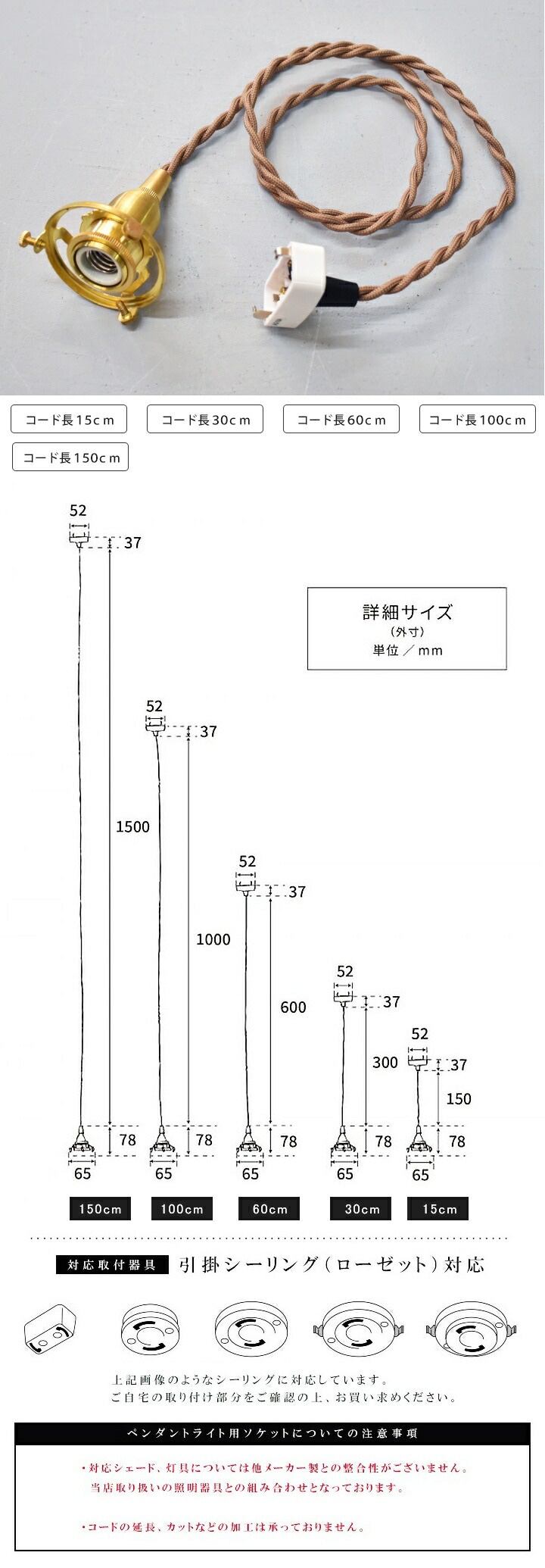 ▼ 下記商品リストからご希望の商品をお選びください。口金サイズ x コード長さ